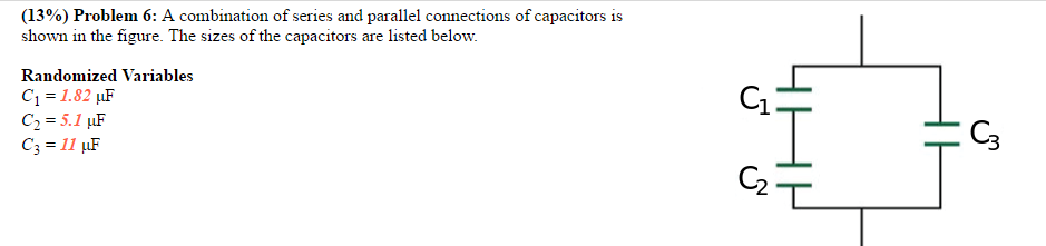 How To Find The Total Capacitance Of The Combination Of Capacitors - 10 uf 2.5 uf 0.30 uf figure 19.32 a combination of series and parallel connections of capacitors.. As for any capacitor, the capacitance of the combination is related to charge and voltage by c=qvc=qv. To find the equivalent total capacitance cp, we first note that the voltage across each capacitor is v, the same as that of the source, since they are connected directly to it through a conductor. The total charge q is the sum of the individual charges: q = q1 + q2 + q3. Round your answer to three decimal places. Using the relationship q = cv, we see that the total charge is q = cpv, and the individual charges are q1 = c1v, q2 = c2v, and q3 = c3v.